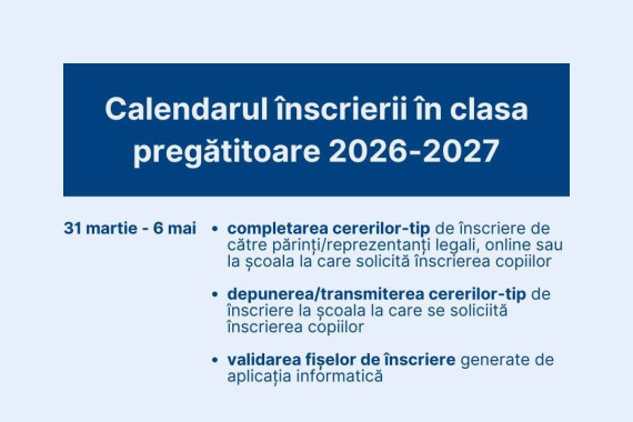 Calendarul înscrierii în clasa pregătitoare 2026 - 2027