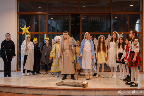 Un prilej deosebit de bucurie l-au oferit cei mai mici membri ai comunității noastre școlare. Elevii din ciclul primar și gimnazial, reuniți în grupurile „Princhindeii” și „Îngerașii”, au prezentat sceneta „Nașterea Domnului”, presărată cu colinde pregătite cu mult suflet, emoționând prin naturalețe, gingășie și bucuria sinceră a copilăriei. Elevii din clasele a II-a, a III-a și a V-a au fost coordonați de doamnele prof. Ionela Costiniuc, Eliza Grecu și Mihaela Chiroșcă.