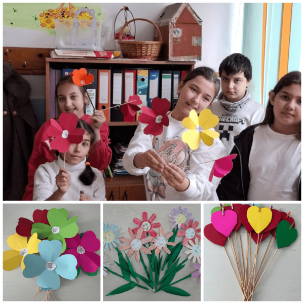 Preșcolarii și o parte din elevii din învățământul primar s-au implicat în realizarea unei expoziții de desene pe tema prieteniei și a nonviolenței. Clasele a III-a A, a III-a B și a IV-a A au confecționat flori în cadrul unor ateliere creative și felicitări, s-au implicat și sprijinit reciproc pentru a surprinde personalul didactic, didactic auxiliar și nedidactic, dar și pe colegii lor, marcând astfel „Ziua Gestului Frumos”.