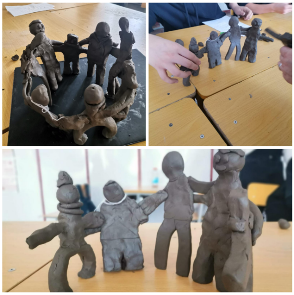 Elevii clasei a VIII-a B au realizat o lucrare colectivă din lut „Hora Prieteniei” inspirată din celebrul vas Cucutenian - „Hora de la Frumușica". Fiecare elev a realizat câte o formă antropomorfă, iar acestea au fost montate într-o singură compoziție unitară. Fiecare figurină, cu propria înălțime și propriile caracteristici, și-au unit brațele, fiecare cum a putut, pentru a crea acest cerc al înțelegerii, al comuniunii și al momentelor de neuitat. Hora, acest dans mistic, vechi de mii de ani, unește oamenii în comuniune cu ei înșiși, ca simbol al iertării și dorintei de a experimenta lucruri noi, împreună.