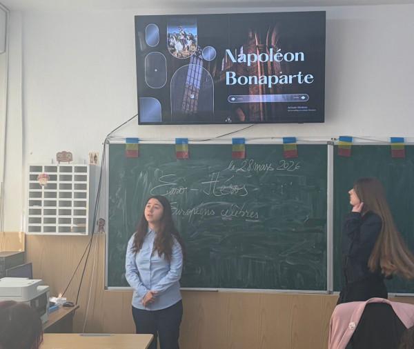 Gherganov Eugeniu, Blându Luca, Văleanu Bogdan, Pintilie Albert, Chirilă Andrei, Pavel-Hagiu Sany Maria, Ciobanu Andreea, Rusu Maria și Dorneanu Paula, coordonați de doamnele profesoare Manuela Anuței și Paula Cazamir, au răspuns provocării de a vorbi în limba franceză despre personalități istorice europene.