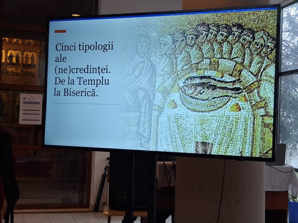 Conferința inaugurală, în plen, a fost susținută de părintele arhimandrit Hrisostom Rădășanu, consilier la sectorul învățământ al Arhiepiscopiei Iașilor, intitulată „Cinci tipologii ale credinței - între Templu și Biserica lui Dumnezeu“. A fost momentul începerii activității interactive, publicul participant adresând întrebări care au generat o comunicare deschisă, amplă, ziditoare.