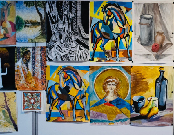 Expoziția include și lucrări de inspirație modernistă, în care forma este reinterpretată prin fragmentare și geometrizare. Studiile siluetelor de cai propun deconstrucția volumelor în planuri cromatice, evocând avangarda cubistă. Tot aici se remarcă și compozițiile în care elevii au utilizat efecte pointiliste sau tușe scurte, construind suprafețe dinamice în care lumina este redată prin accente cromatice subtile.
