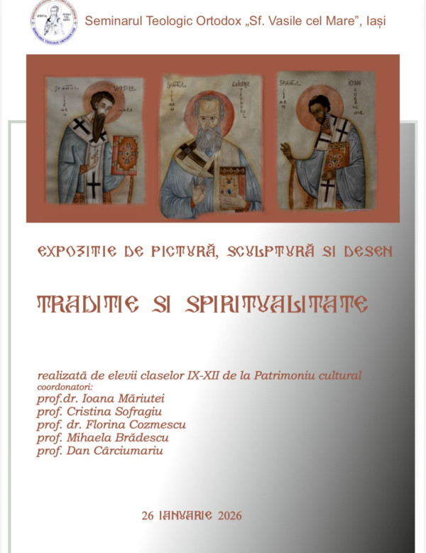 Holul principal al Seminarului Teologic Ortodox „Sfântul Vasile cel Mare” din Iași devine și în această perioadă, un spațiu al întâlnirii dintre teologie, sensibilitate artistică și reflecție vizuală, găzduind Expoziția „Tradiție și spiritualitate” ce reunește lucrările plastice ale elevilor claselor IX-XII de la specializarea Patrimoniu Cultural.