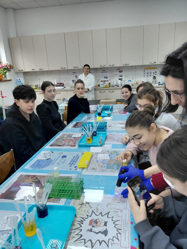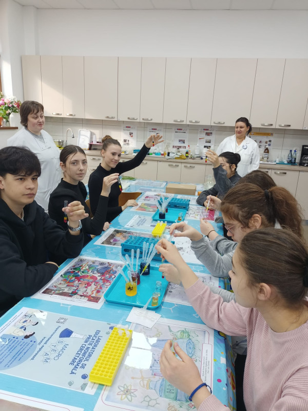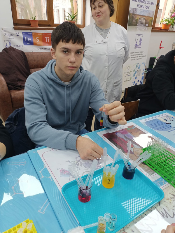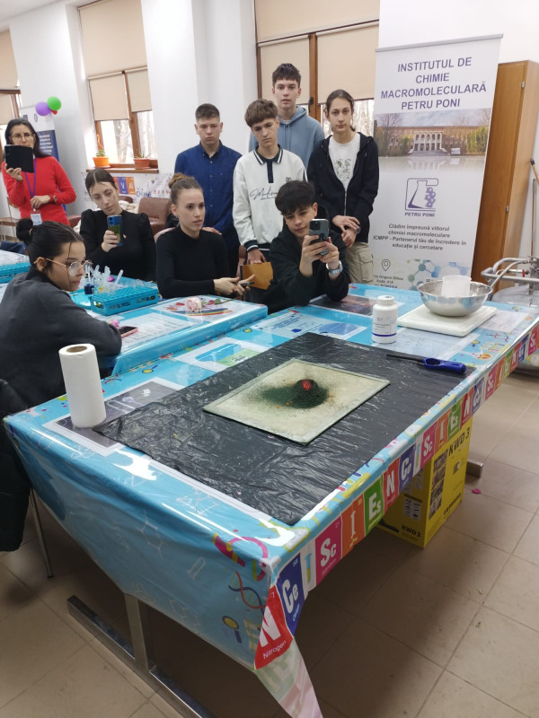 Luni, 30 martie 2026, un grup de elevi din clasele a IX-a şi a X-a de la Seminarul Teologic Ortodox „Sfântul Vasile cel Mare au mers în vizită la Institutul de Chimie Macromoleculară „Petru Poni Iaşi pentru a descoperi tainele nebănuite ale chimiei. Gazdele noastre ne-au condus în laboratorul de educație nonformală, unde elevii însoţiţi de doamna prof. Adriana Perianu au descoperit povestea din spatele activității grupului de cercetare și magia chimiei ascunsă în obiectele de zi cu zi.  De la „tricolor, „semafor, misterul cernelii „magice și spectaculosul vulcan chimic, până la universul fascinant al nanomaterialelor și al substanțelor fluorescente, precum şi criogenarea florilor, totul a fost descifrat şi explicat la nivelul de înţelegere al participanţilor. Colaborarea a fost posibilă datorită proiectulului MACRO-STEAM, cu sprijinul Ministerului Educației și Cercetării – UEFISCDI, proiect nr. PN-IV-P10-SS-SC-2024-0169, finanțat prin PNCDI IV.