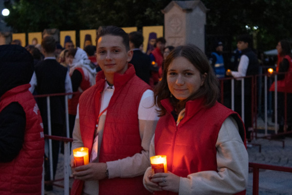 Când îmbrăcăm vestele roșii, ca îngeri ai Sfintei Cuvioase Parascheva, și ieșim printre oameni, nu o facem pentru a fi văzuți, ci pentru a fi aproape de cei care vin cu lacrimi și credință la Cuvioasa. Îi vedem obosiți, dar senini, cu icoane în mâini și nădejde în ochi. Le oferim un pahar cu apă, un cuvânt bun, un zâmbet. Și uneori, fără să știm, acel gest mic devine pentru ei o mângâiere de la Dumnezeu.